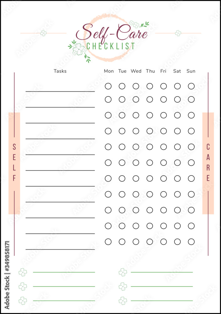 Self Care Checklist Minimalist Planner Page Design Cute Botanical Decor Element With Pink Color Habit Tracker Bullet Journal Printable Sheet Personal Organizer Notebook Vector Template Stock Vector Adobe Stock