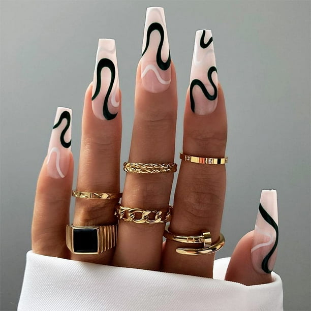 Long Press On Nails Dark Green Ripple Acrylic False Fake Nails Press On Coffin Artificial Nails For Women Stick On Nails With Glue On Static Nails Walmart Com
